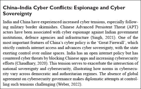 The Imperative of Multilateral Legal Responses: As cyberspace is transnational, it is increasingly felt that unilateral legal measures for cyber warfare may not be adequate to meet the international nature of cyber threats. Scholars call for a multilateral solution to cyber warfare, in which global cyber norms are shaped and enforced through international cooperation (Mueller, 2010). Since cyberspace transcends any single state, collective action by states must be taken to prevent the escalation of cyber conflicts and create stability in the virtual space. Held and McGrew (2007) stress that international institutions, including the United Nations, must take a leading role in governing cyber activities so that states come together to establish binding agreements on cyber defence, offence and the conduct of cyber warfare. The Future of Cyber Sovereignty and International Law: As the international community continues to come to terms with the reality of cyber warfare, there is also a developing understanding that the very notion of sovereignty needs to change. There has been the development of the idea of ‘cyber sovereignty’, where countries define control over their virtual spaces, but this must be reconciled with global cooperation (Krasner, 2001). The dilemma is how to balance states’ urge to manage their virtual borders and the necessity for joint action in confronting cyber threats that tend to transcend national borders.
